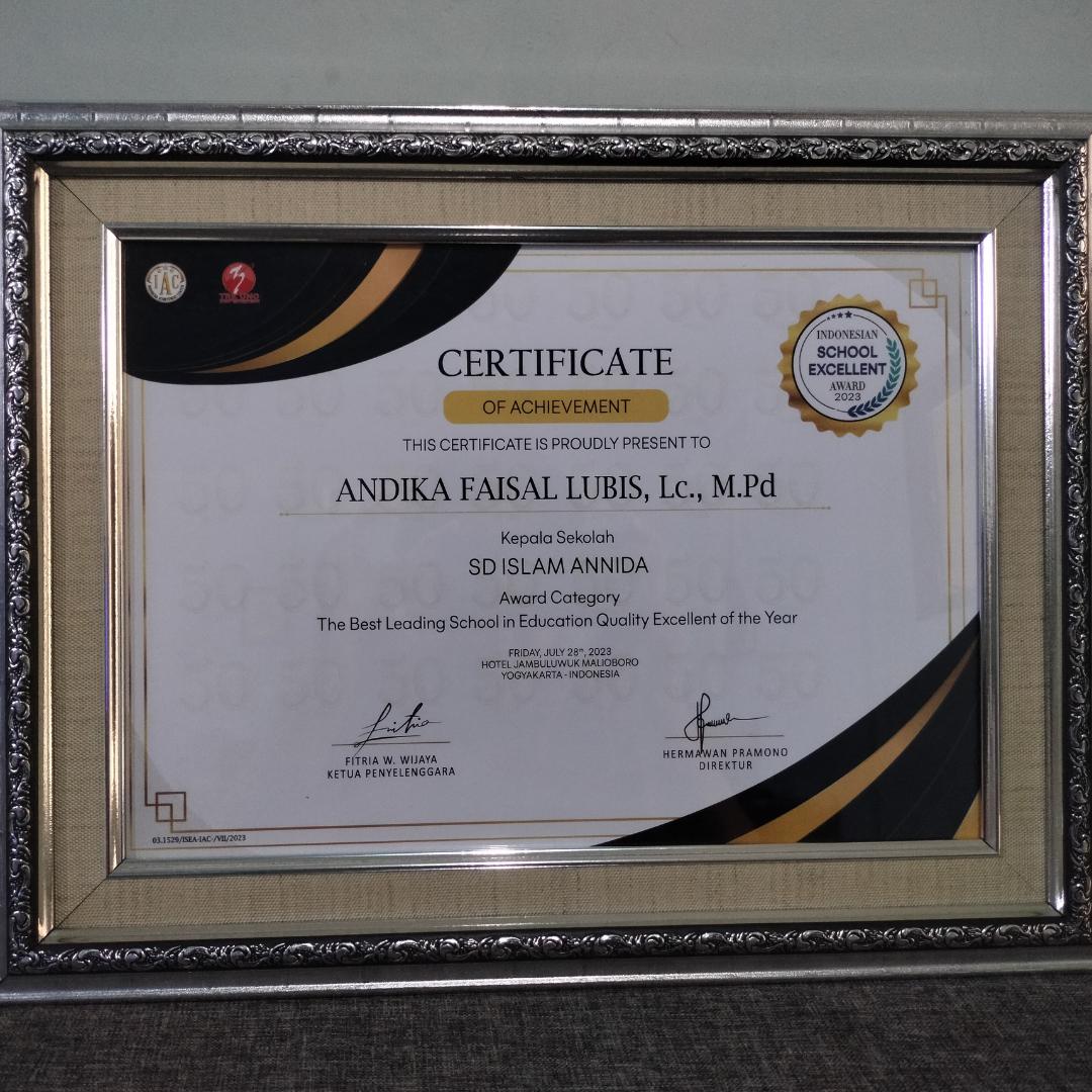 Alhamdulillah Selamat dan Sukses kepada Sekolah Dasar Islam Annida dan Bapak Andika Faisal Lubis, Lc., M.Pd yang atas dedikasi, inovasi, kreativitas dan komitmen yang tinggi dalam dunia pendidikan sehingga berhak mendapatkan anugerah penghargaan sebagai “The Best Leading School in Education Quality Program of the Year“.